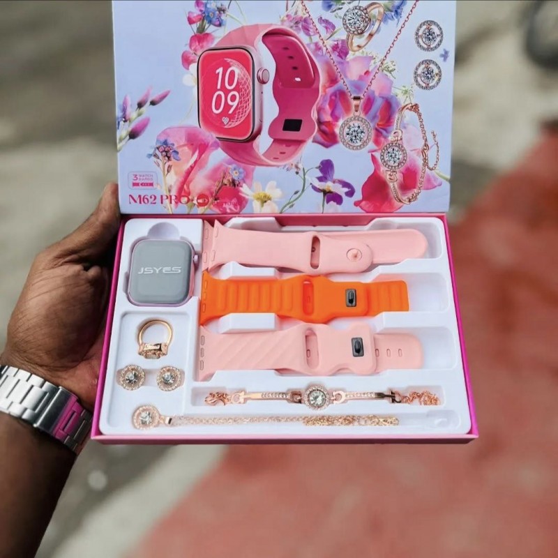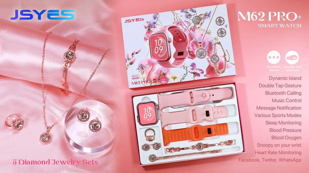 ساعة ذكية JSYES موديل M62 pro مع 3 كساتك وطقم إكسسوار قمة الشياكة بشاشة IPS مقاس 2 انش
