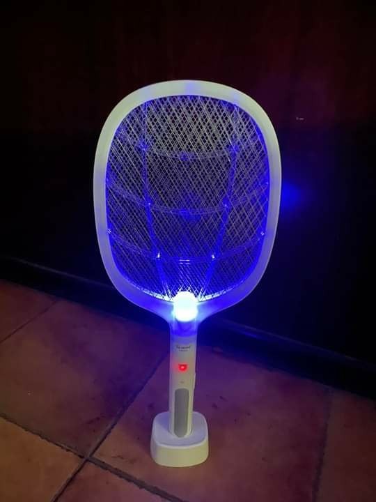 مضرب حشرات يعمل على الشحن  يمكن استخدامه لقتل الحشرات بشكل يدوي  أو تثبيته وتشغيل الضوء ليعمل كأي لطاش  مزود بـ 3 طبقات شبك ستانلس ستيل الطبقات الخارجية آمنة لا تسبب الصعق أما الداخلية تصعق بمجرد دخول الحشرات