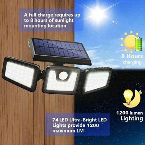 ضوء ثلاثي يعمل على الطاقة الشمسيةموديل JY-1725A مع حساس حركة لإضاءة مداخل المنازل والأبنية والمزارع ..