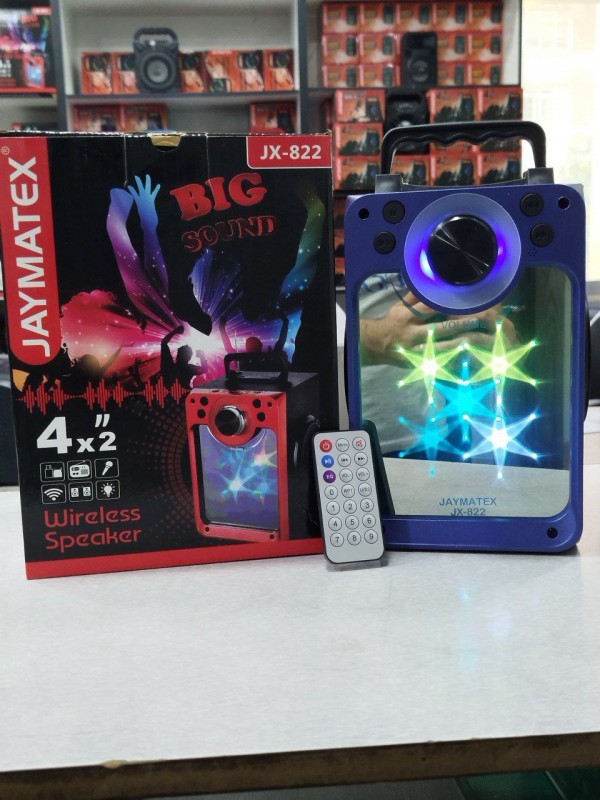 سبيكر المرايا JAYMATEX موديل JX-822 وطني المنشأ واجهة مراية مع إضاءة ملونة صوت صافي بدون أي ضجيج بلوتوث حتى مسافة 10 أمتار يقبل كرت ذاكرة حتى 32 غيغا مدخل USB للفلاشة يمكن تشغيله على وضع الراديو سبيكر مقاس 4 انش × 2 الاستطاعة 5 واط × 2 ريموت كونترول للتحكم بطارية سعة 1200mAh وقت الشحن : 3 ساعات وقت الاستخدام : 1.5 ساعة على صوت 75% المقاسات { 20.8*18.0*27.4 } سم