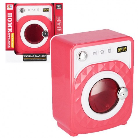 يتميز التصميم الزهري الزاهي بباب أمامي واقعي ولوحة تحكم وأسطوانة دوارة تحاكي حركة الغسيل الحقيقية.