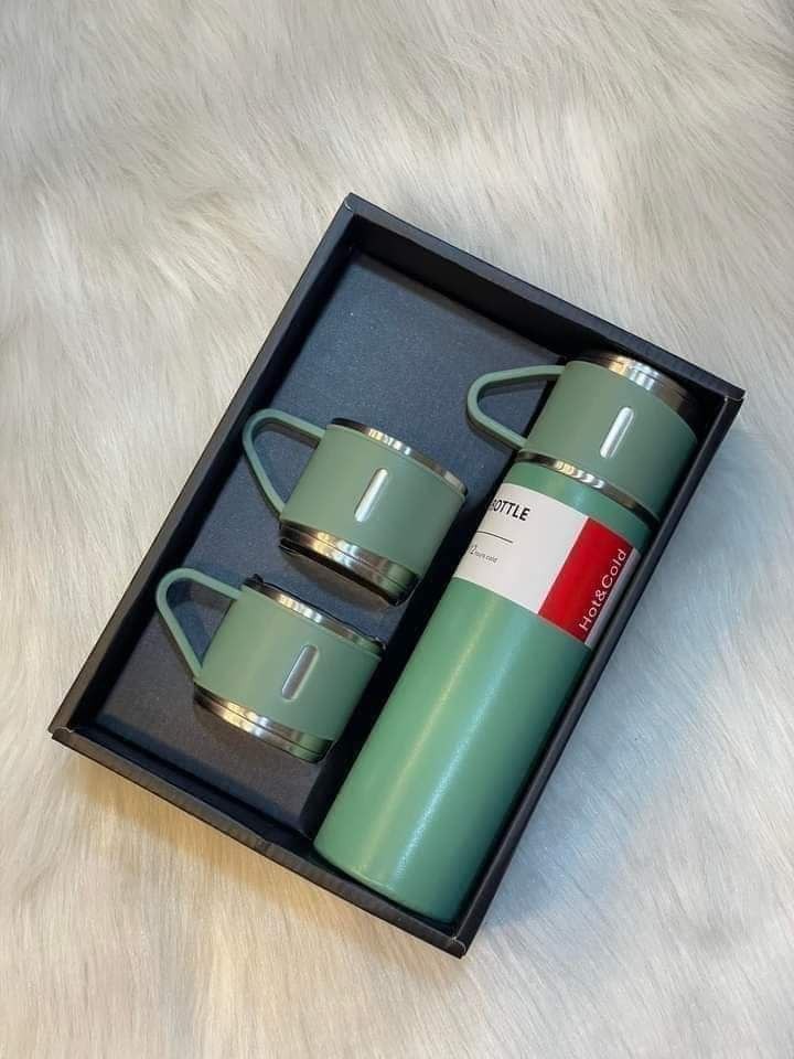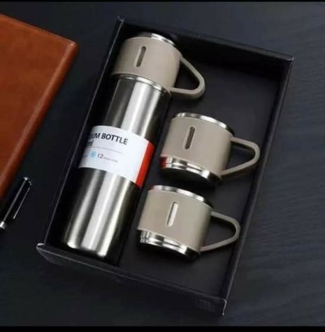 500ml مع 3 فناجين ستانلس ستيل مقاوم للصدأ و الكسر