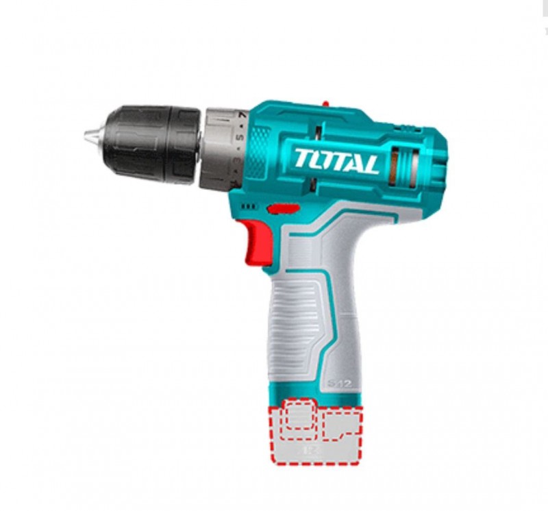 مثقب بطارية 12 فولت 10 مم 20 نيوتن بطاريتين TYPE-C بدون شاحن حديث حقيبة بلاستيك ماركة TOTAL سوبر توتال (TDLI12202)